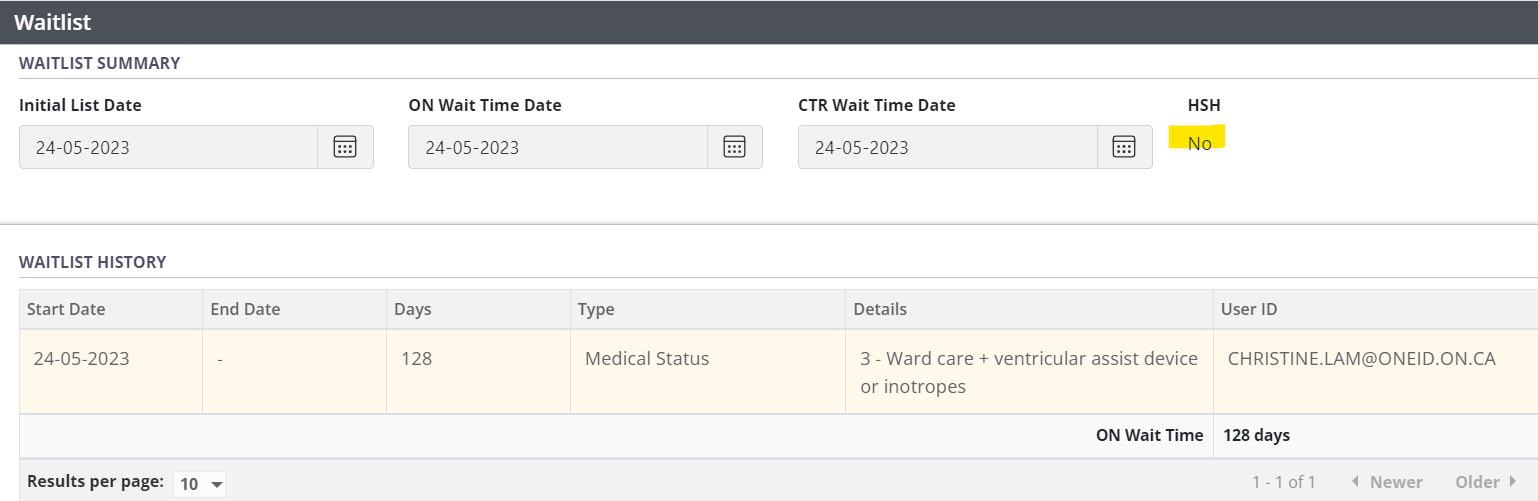 The HSH flag will not appear for patients on a medical hold. Under the Recipient Waitlist Summary, HSH eligibility will be shown as "No" (Refer to Screen Shots Below).