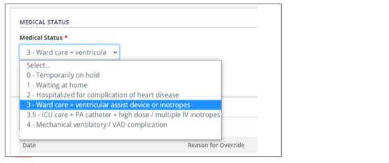 For kidney and pancreas journeys, a Medical Status of High Priority can only be selected by TGLN’s Special Case Committee approval. See SCC overrides.
