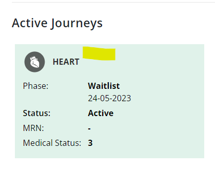 If the journey is for other organs, wait time is accrued until the hold is removed (or until the referral is suspended by the system by the system after 120 days).