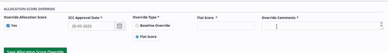 Adds a row to the Allocation Score history table showing the Allocation Score override.
