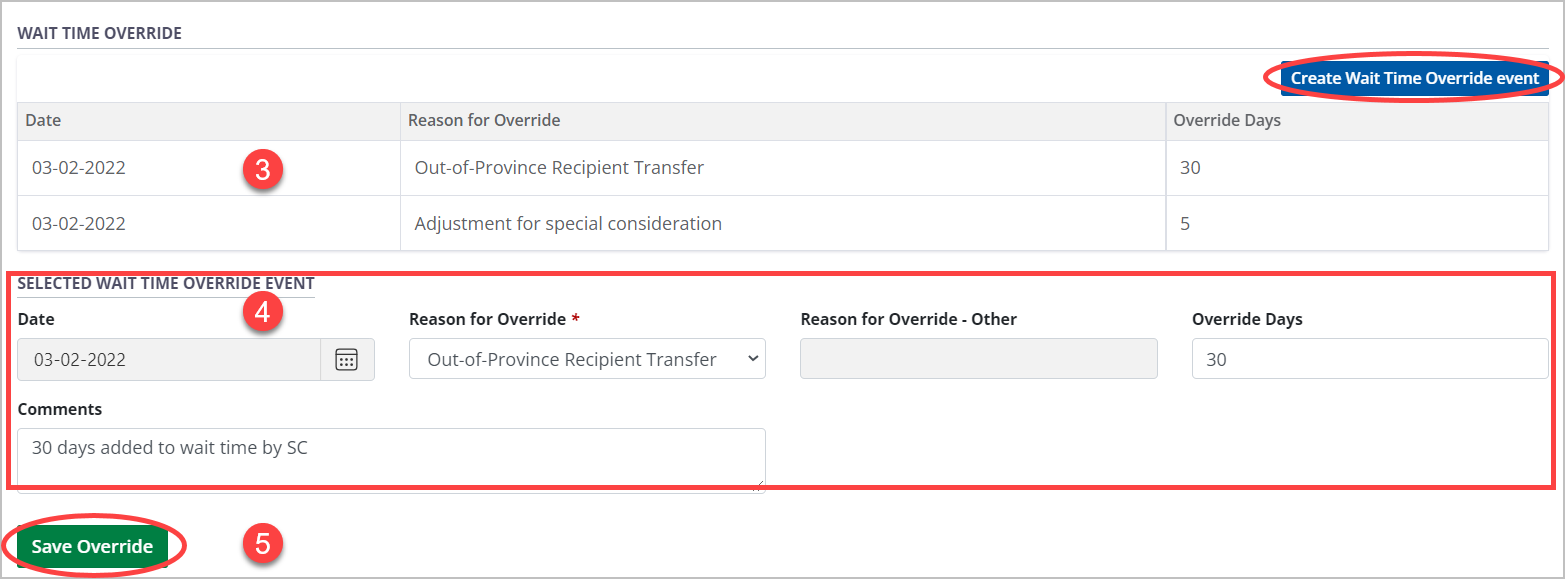 The recipient’s ranking in allocation recommendations will reflect these wait days.
