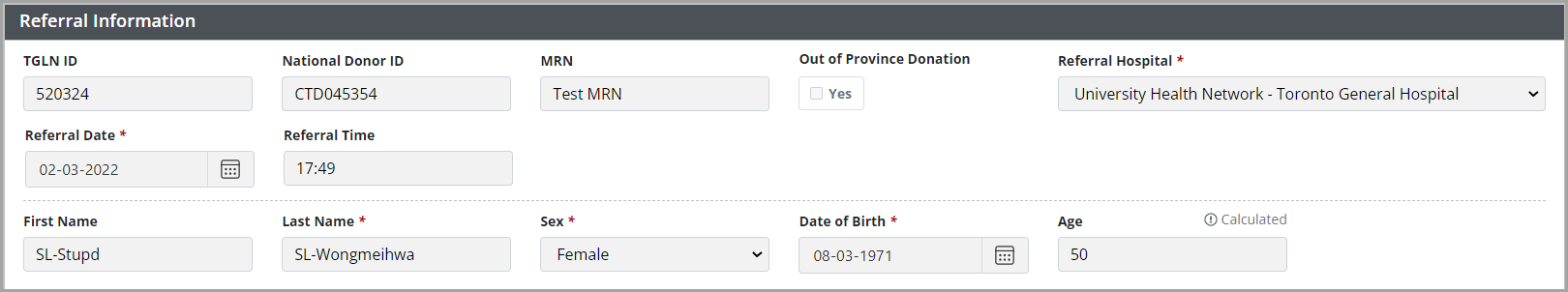 iTransplant generates a new TGLN ID number.