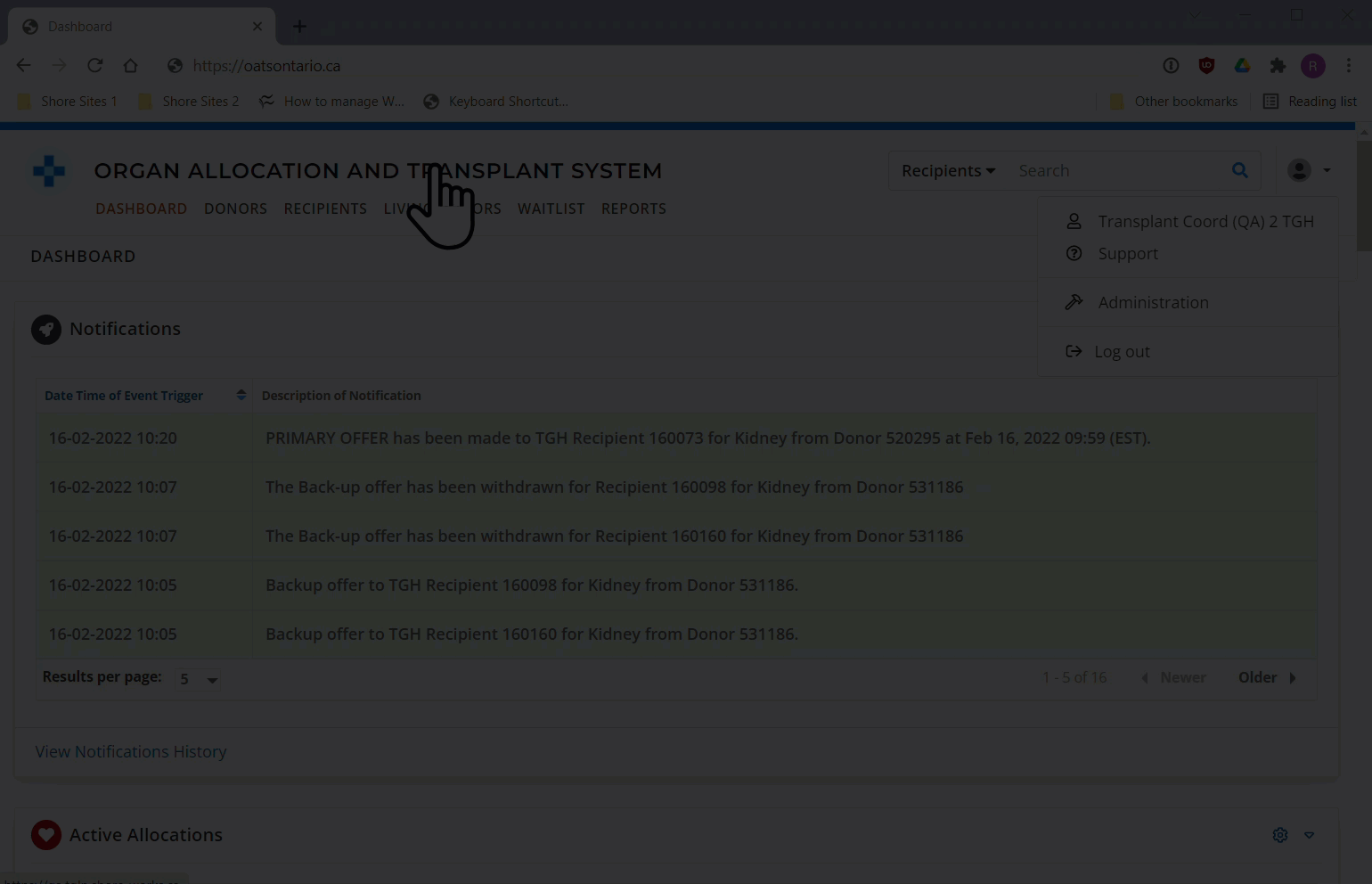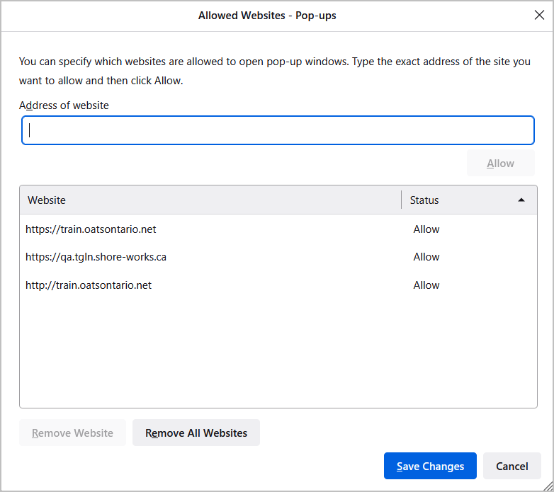 Enter OATSONTARIO.CA in the add a site pop-up.