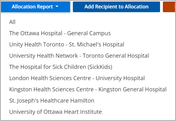 For transplant physicians and transplant coordinators, the only option is the user's transplant program.