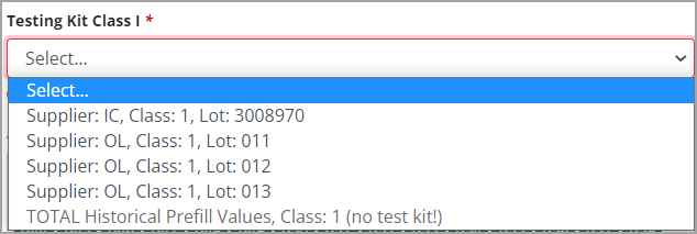 Testing Kits will automatically default to the most recently uploaded test kit in OATS for each Class I and Class II and can be modified as needed.