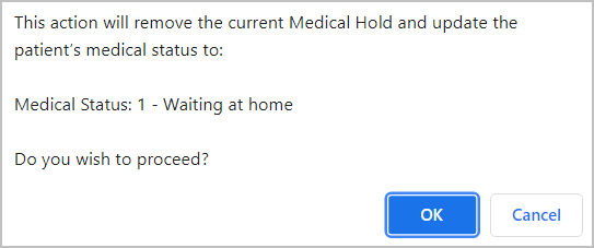 The system prompts you to confirm that this journey will be removed from medical hold.