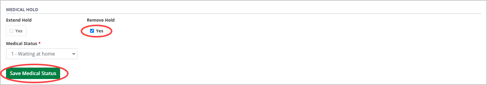 Select the Save Medical Status button.