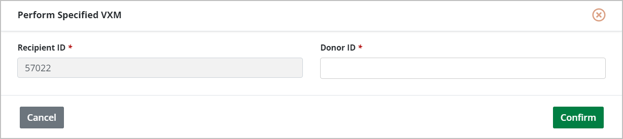 A Specified VXM is a virtual crossmatch performed between HLA data for a selected recipient and a selected donor.