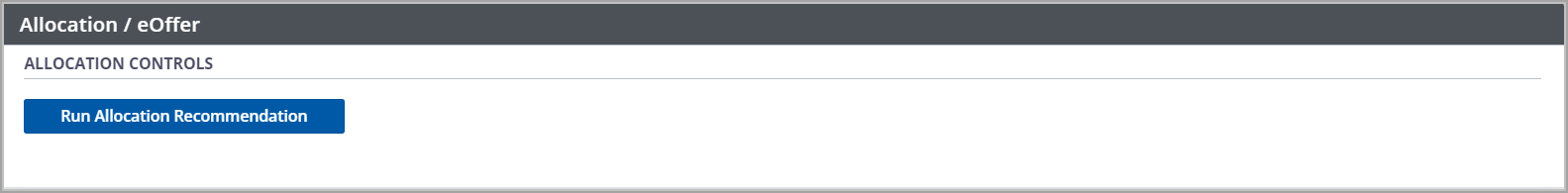 After the allocation is run, the Allocation/eOffer section expands to show new buttons and to open up additional details, including the allocation recommendation.