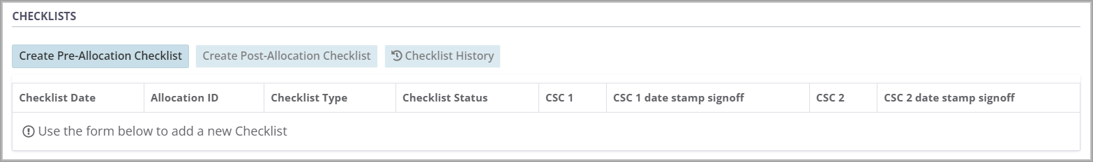 Access to Checklists.