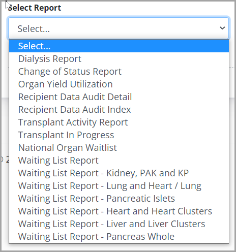 Select the type of report you want to run from the Reports dropdown