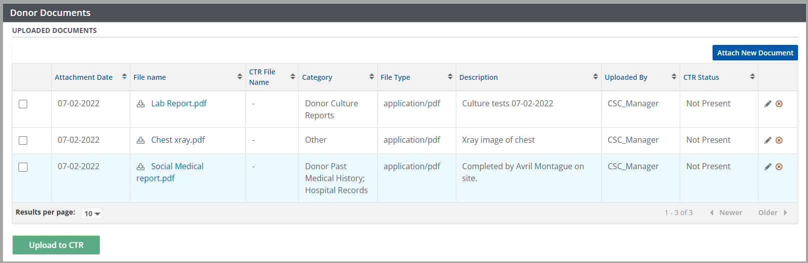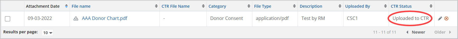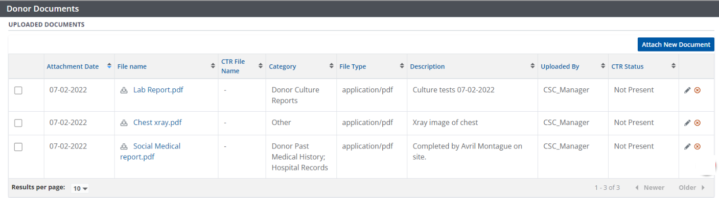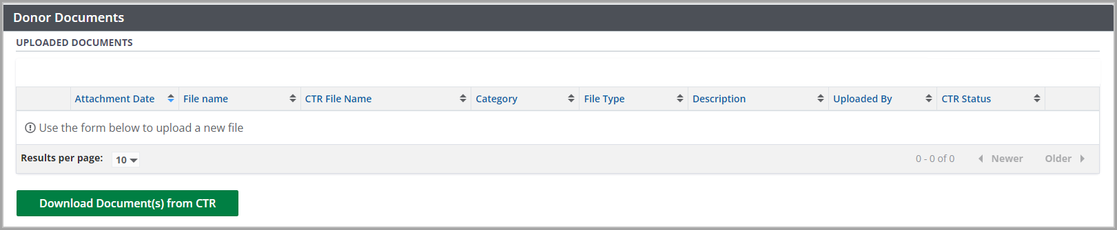 In addition to adding and removing documents directly to a donor profile, documents can be shared with CTR.