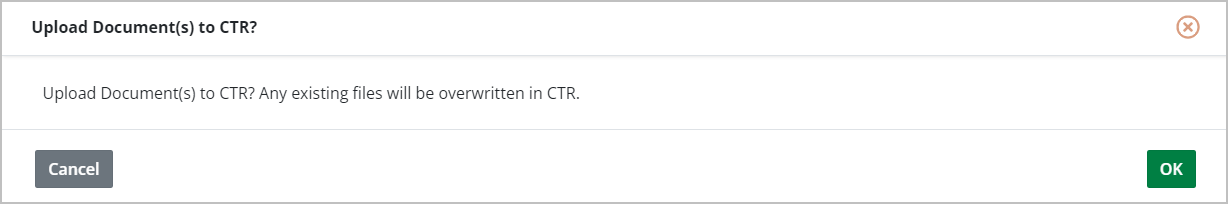 The system prompts you to confirm that existing files (if any) will be overwritten in CTR.